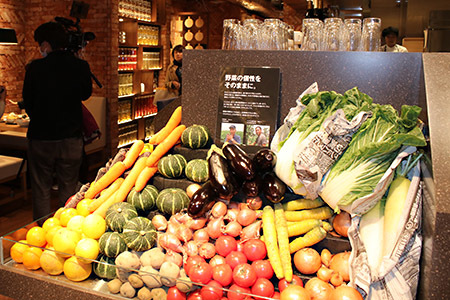 地下1階は「MUJI Diner」。「素の味」「楽しむ」「おすそわけ」をテーマに、野菜を中心に旬の魚介や肉料理、ジビエなどを使った一品料理を提供する。食材の生産地や生産者が分かるのが特徴だ。作り立ての豆腐を提供する工房も設置。キッチン用品などを購入することもできる。銀座に朝食を摂る場所が少ない点に着目し、朝7時30分から営業を開始する。