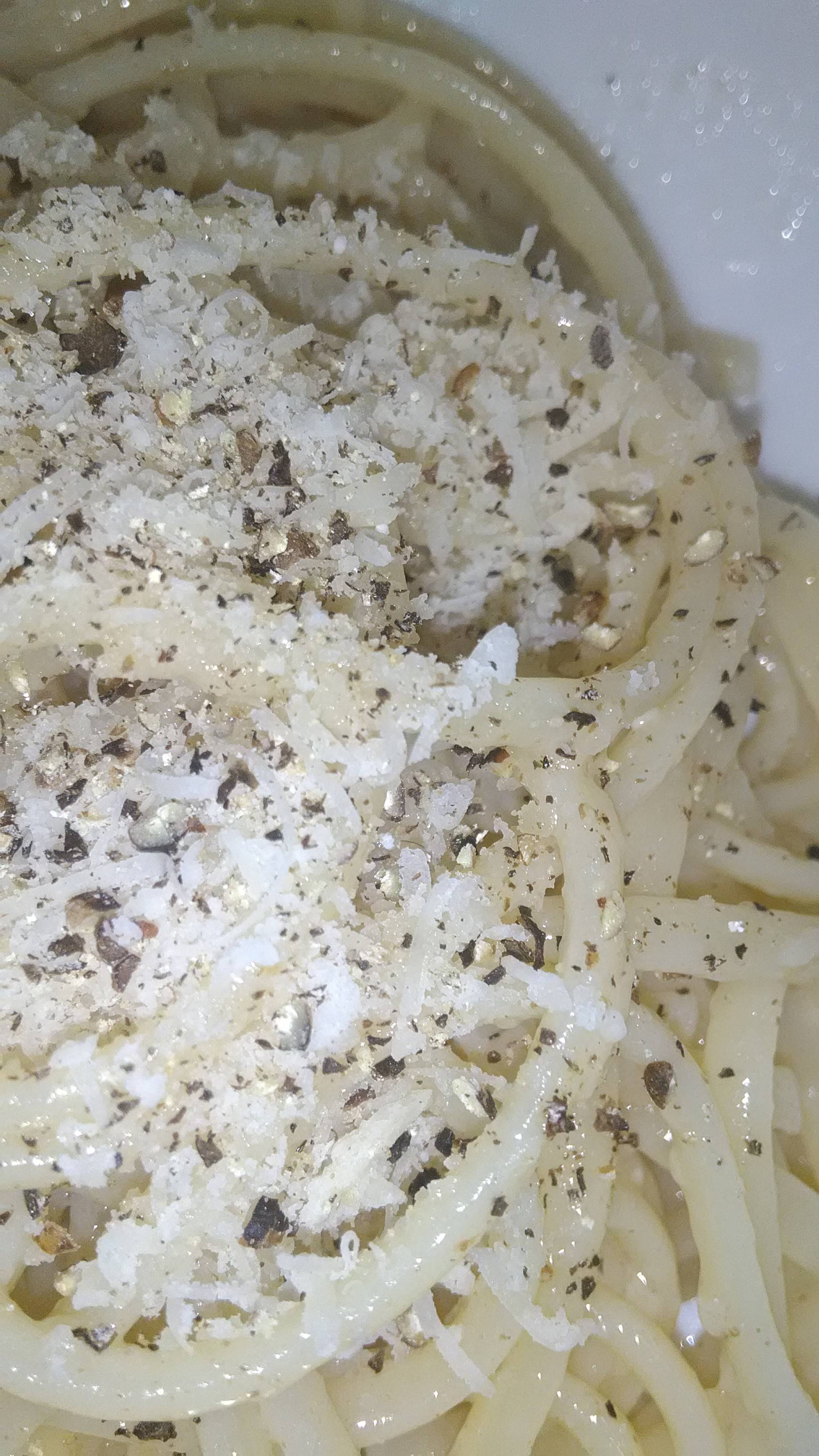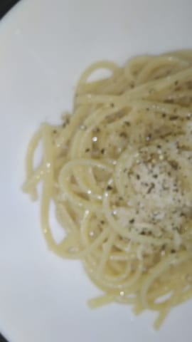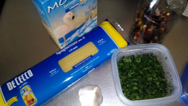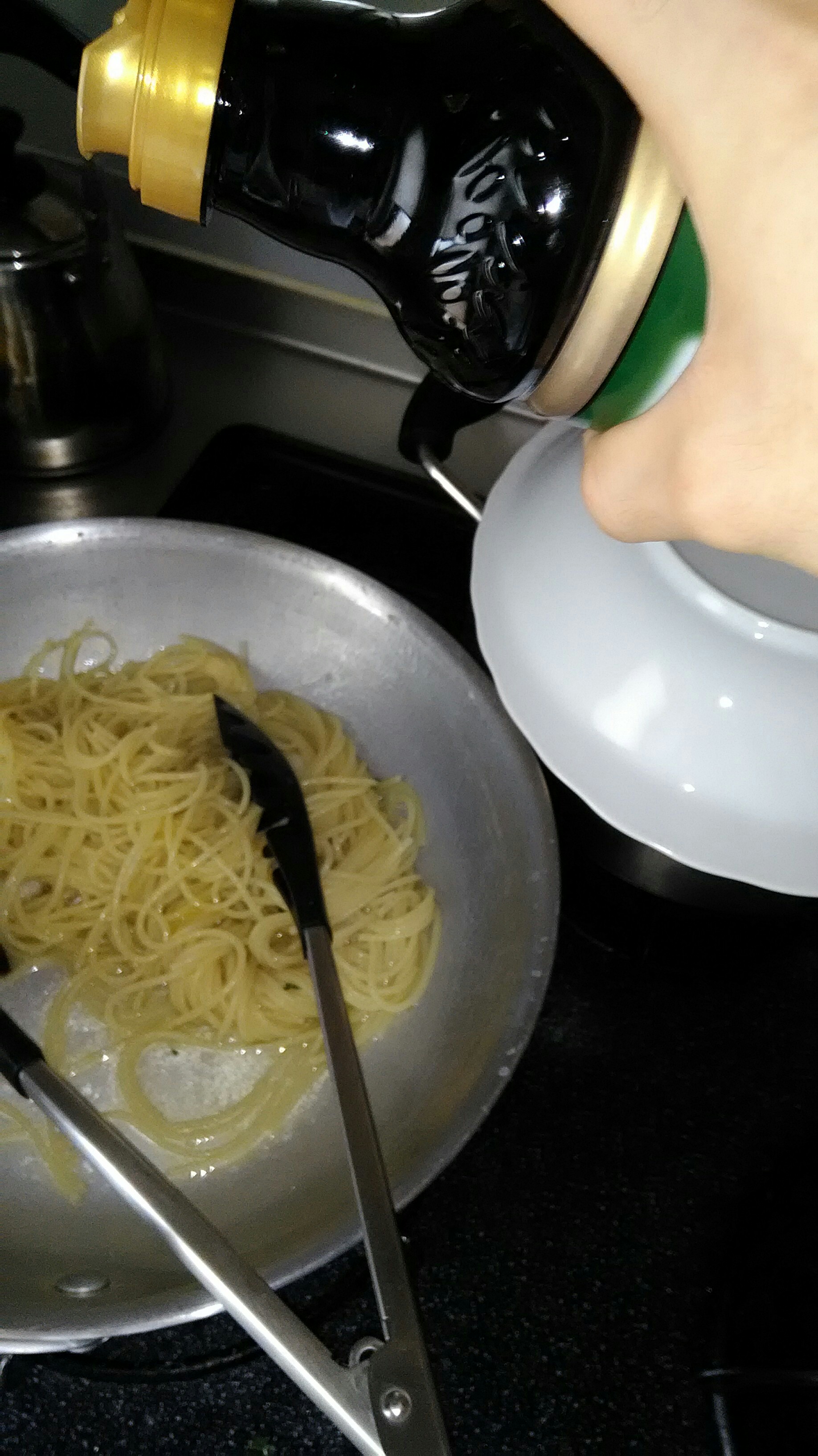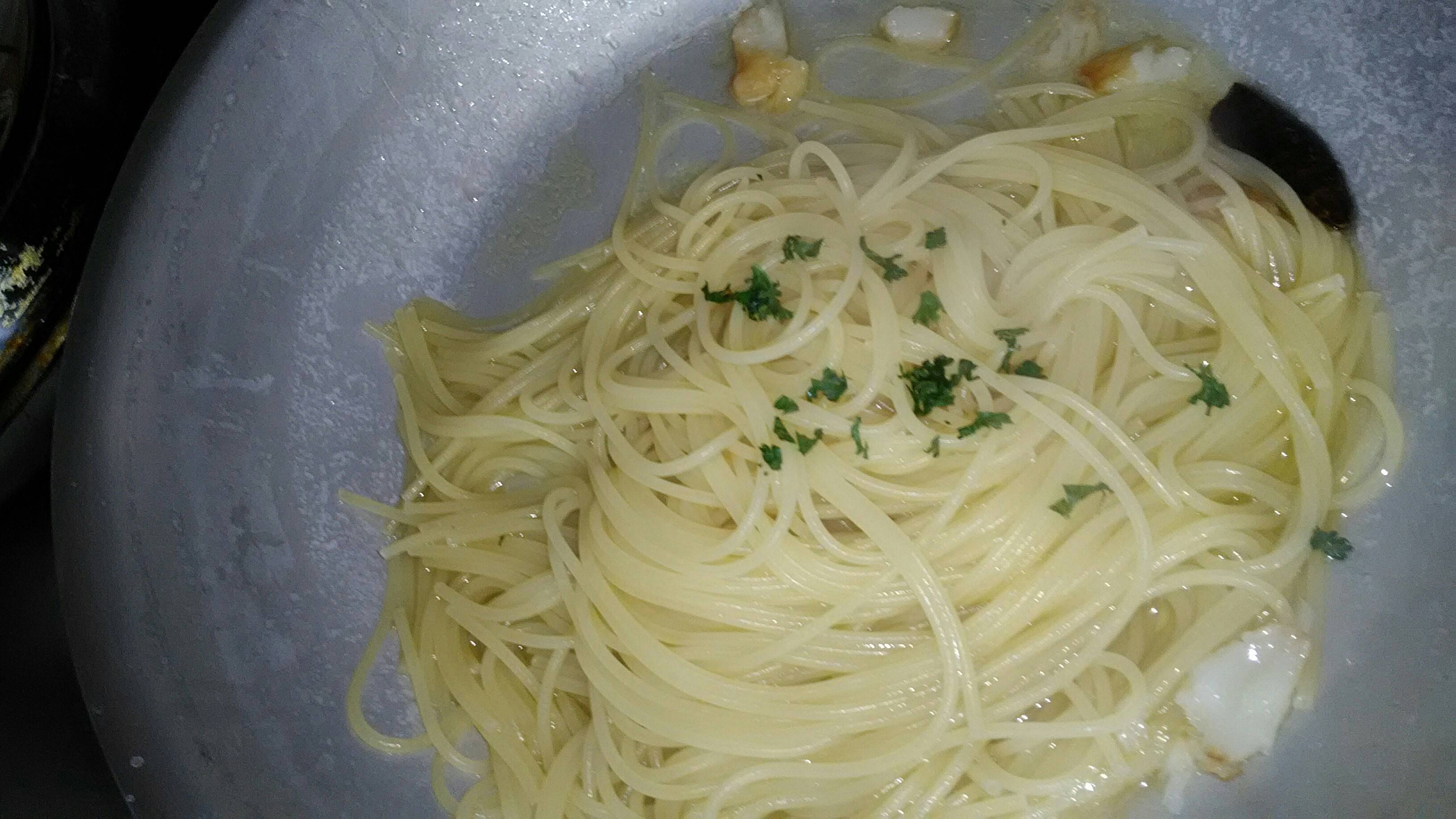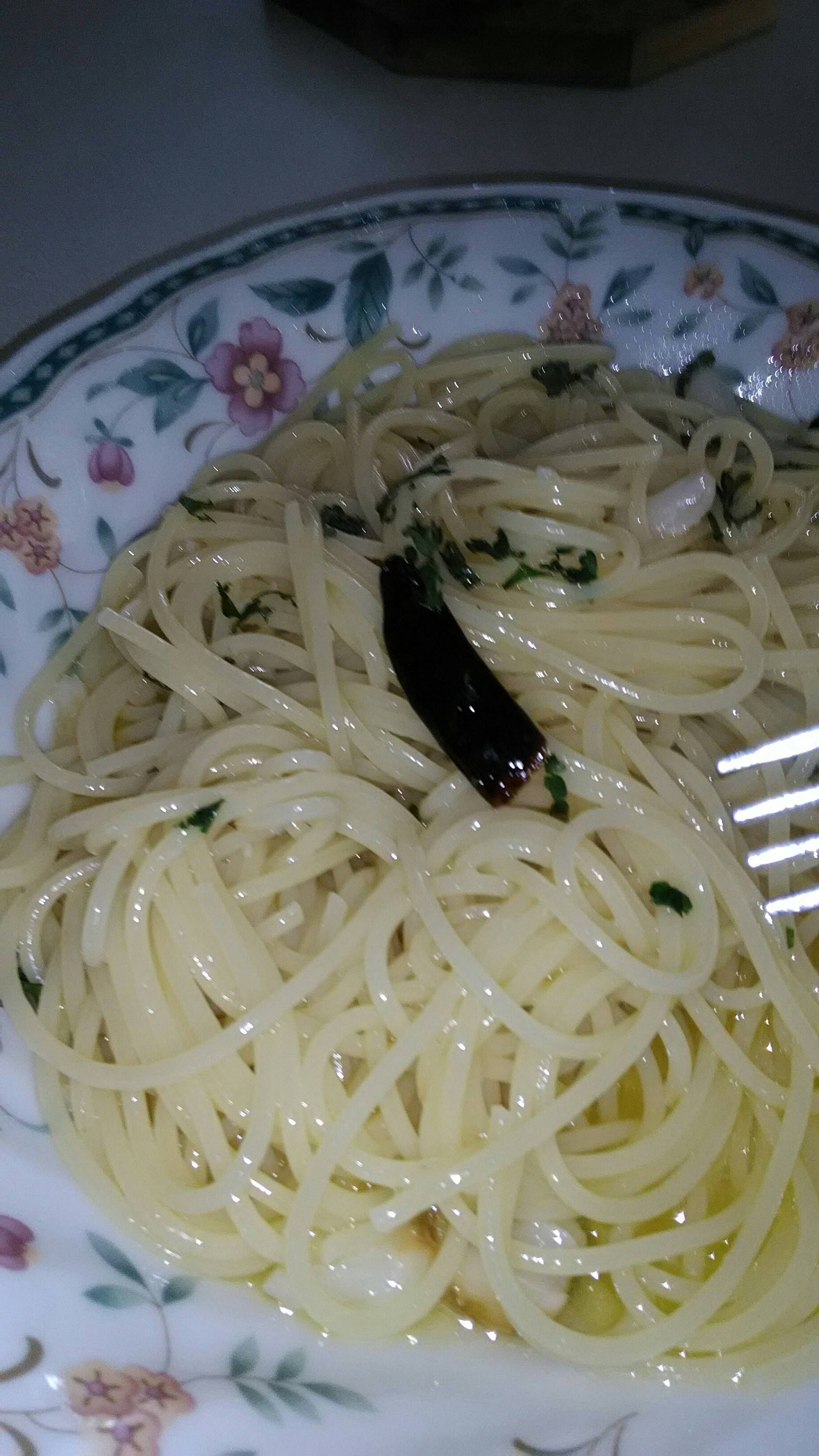 イタリー語やとSpaghetti aglio, olio e peperoncinoやから麺はちゃんと入ってるんだなぁ