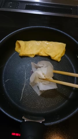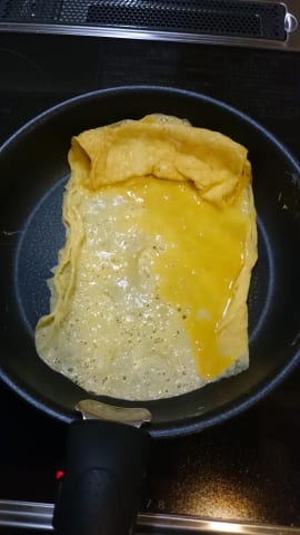 卵焼き用のフライパンでもっと卵液流し込まな火が入りすぎる