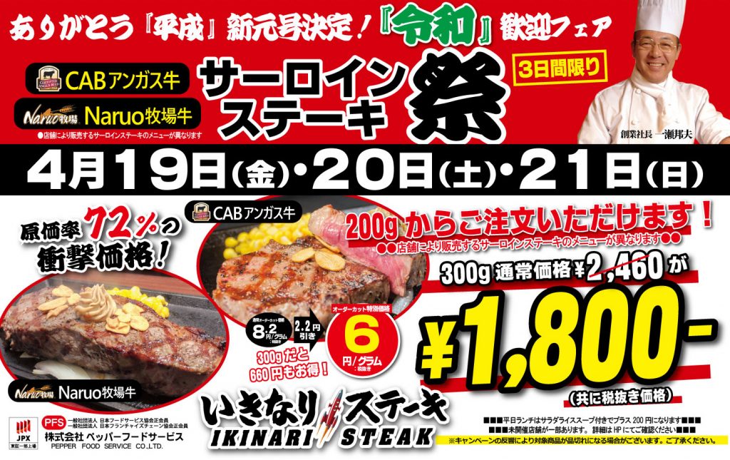 いきなりステーキ、サーロインステーキ通常価格2460円が1800円で食える神キャンペーンを開催!!