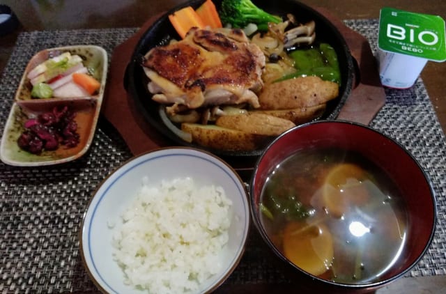最初は鉄皿で焼いたんだけどそれだと鉄板が汚れやすいのでフライパンで焼いて熱した鉄皿に移すやり方してる