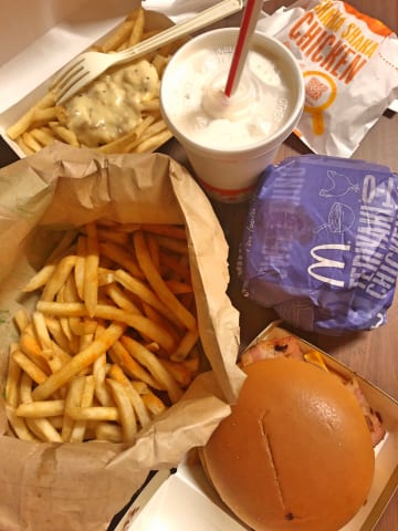 マクドと肉と炭水化物が好きなんやね。高血圧と痛風になりそう!ダイエットついでに食前に蒸し大豆25粒食べてみてよ。