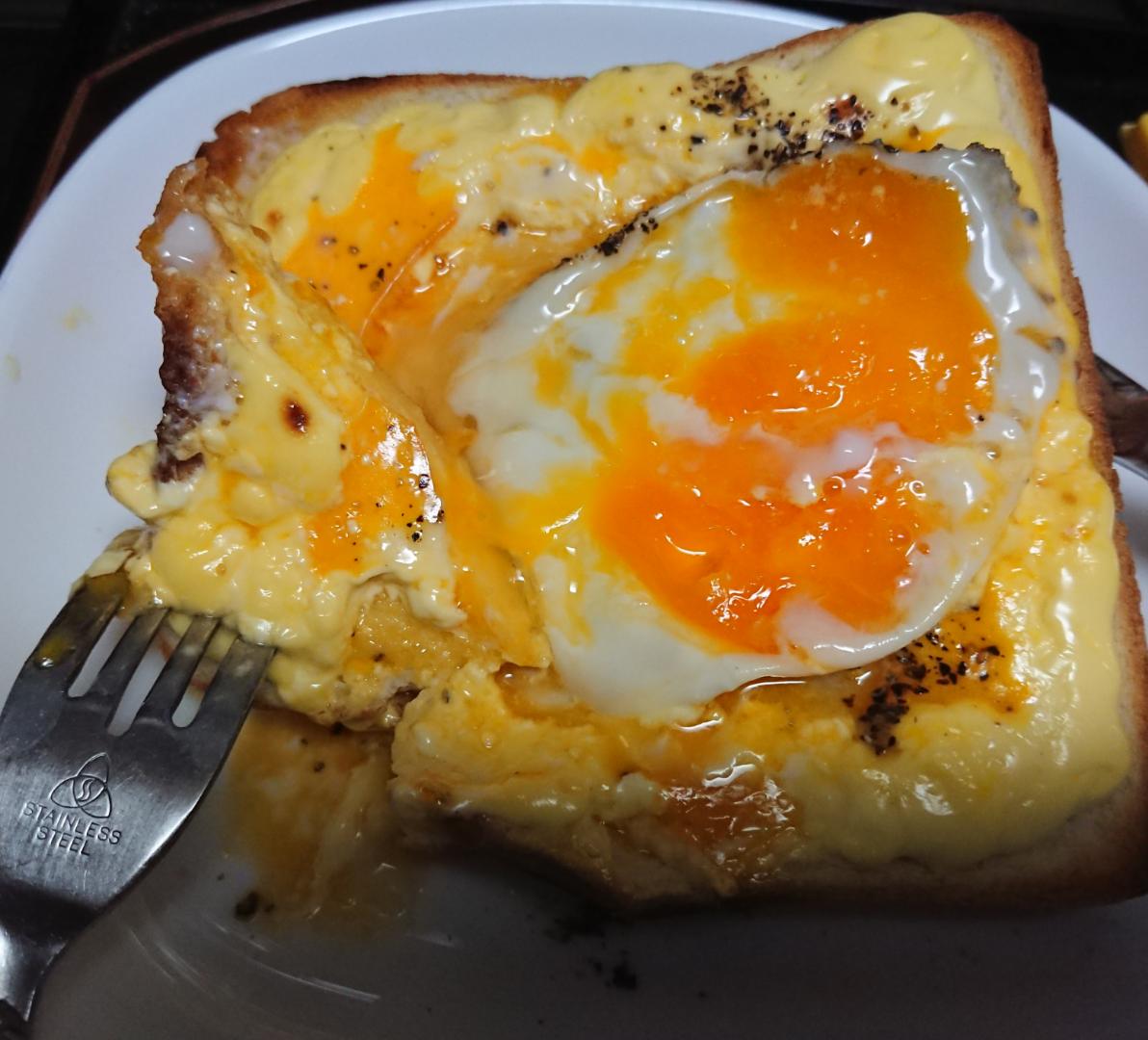 どうせなら食パンにからしマヨネーズ塗って焼いてから半熟ゆで卵スライスして卵サンドみたいにした方が美味しいし好きだな個人的には。