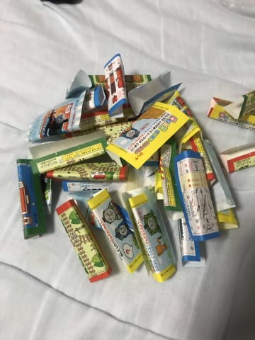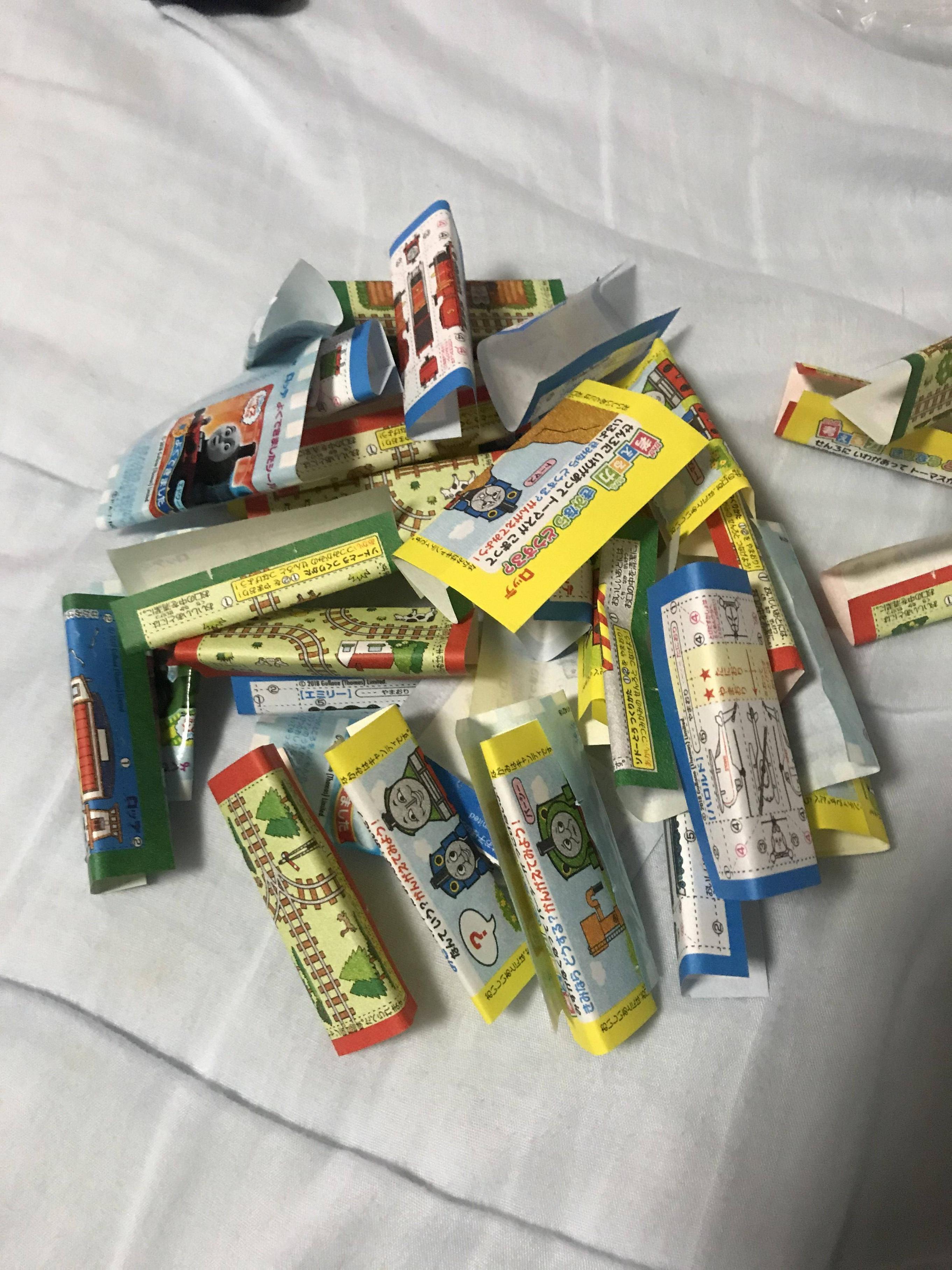 【画像】トーマスのチューイングキャンディの包み紙でジェームスとトーマス作ったで