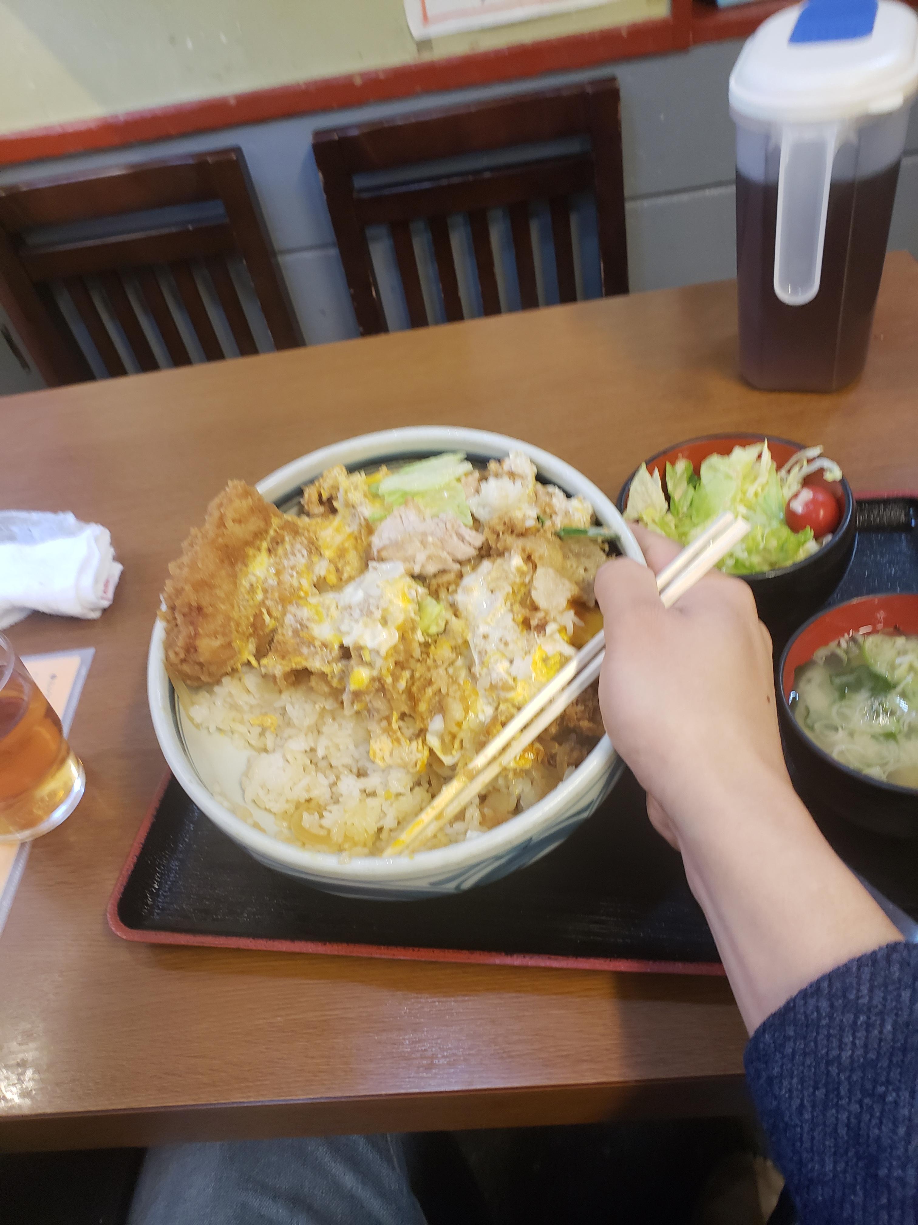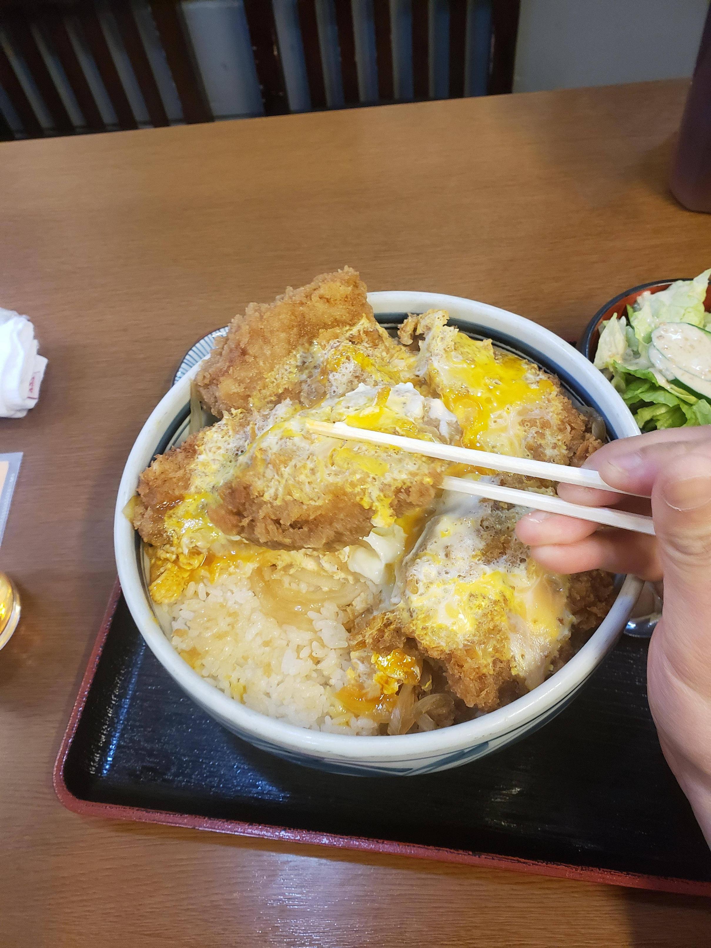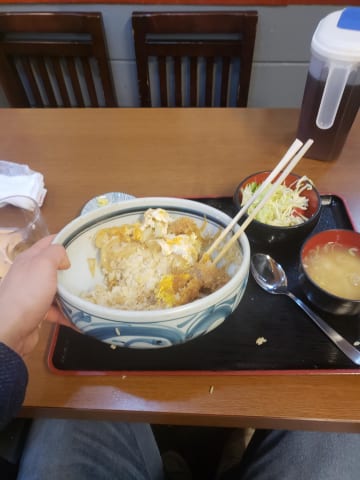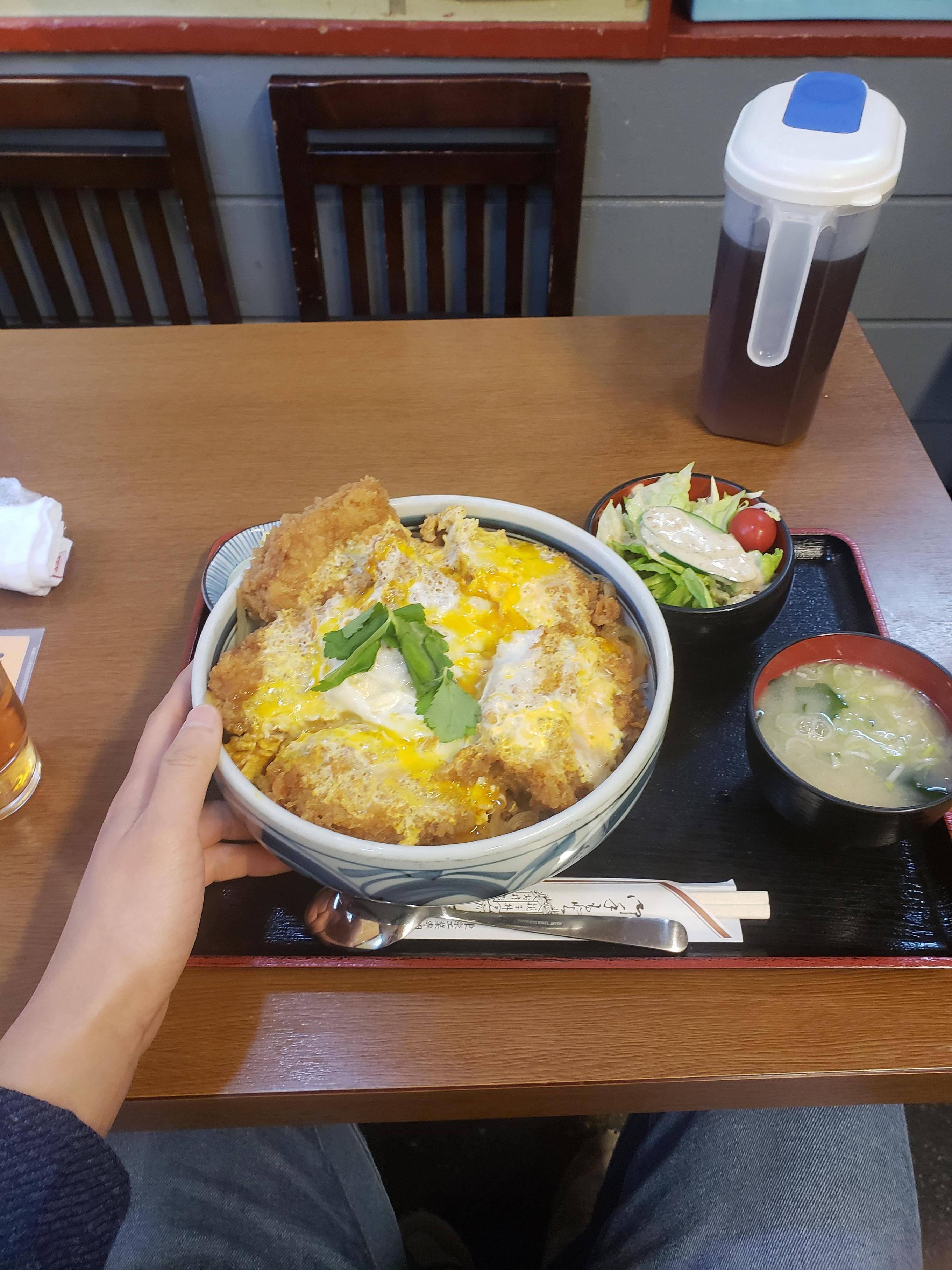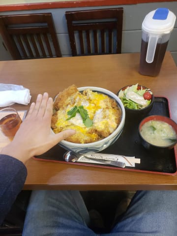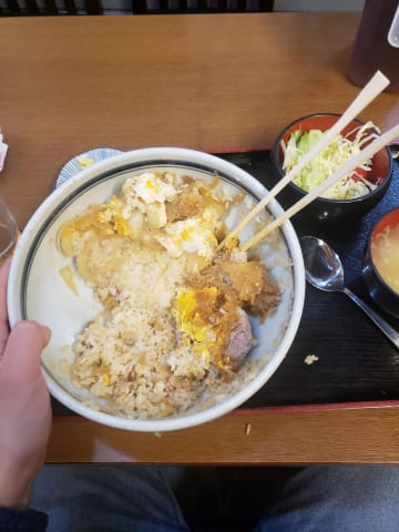 知床の羅臼の食堂入って、普通にかつ丼頼んだら、こんな大きさの出てきたよ、半部くらいしか食べれなかった。(ごはん半分残した)、寒い所の漁師って体力勝負なんだなと思った。