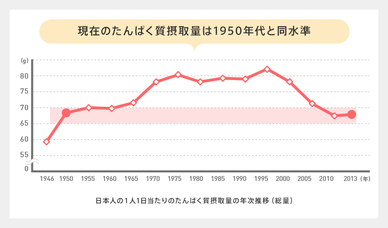 【悲報】今の日本人のタンパク質摂取量、戦後すぐの時代と変わらなかった