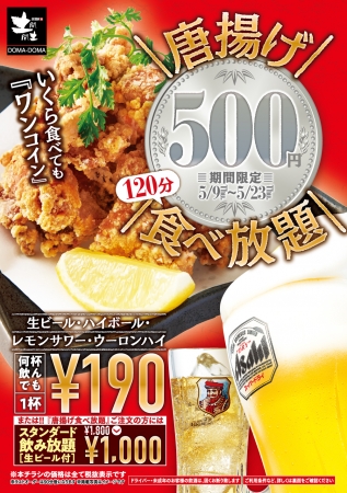 【朗報】居酒屋土間土間、500円で唐揚げ120分食べ放題の神イベントを開催中