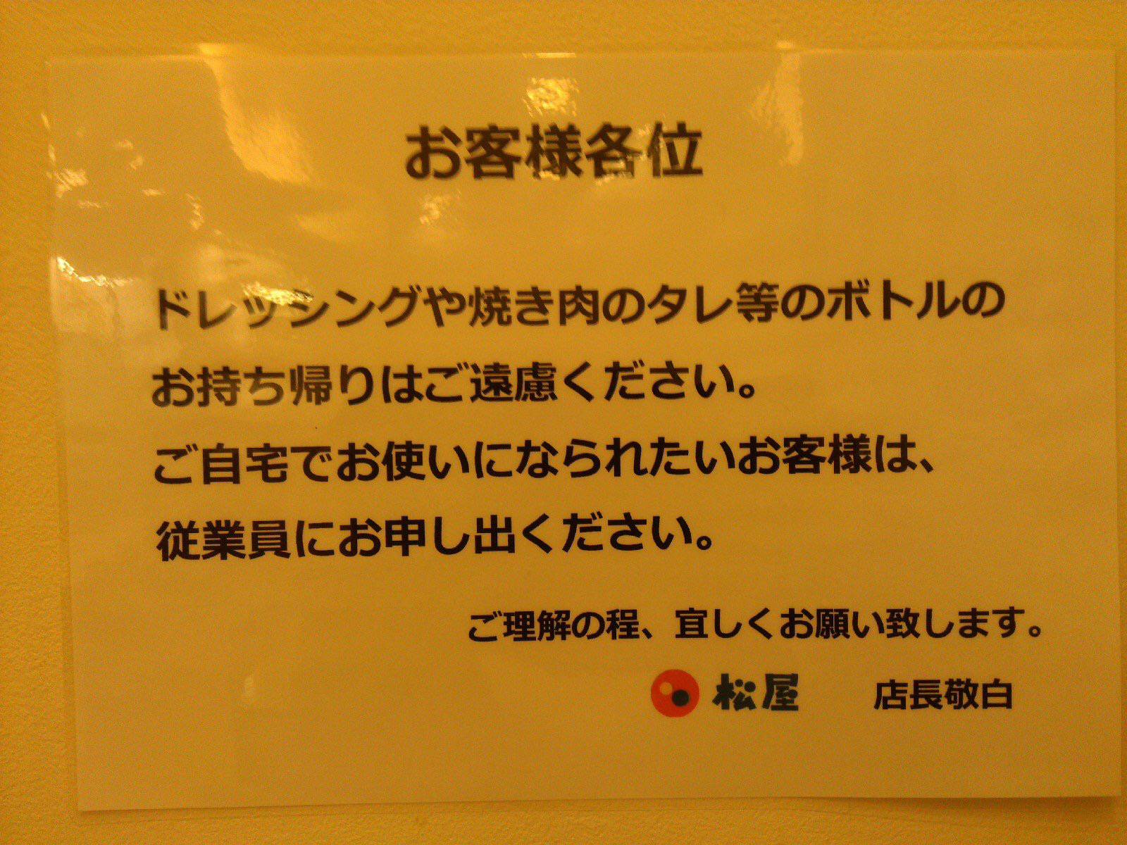 注意書きには「持ち帰る人を見かけたら、そっと肩を叩いてあげてください」って感じで客同士で監視させるようにしてたのは、なかなか良いと思ったわ。