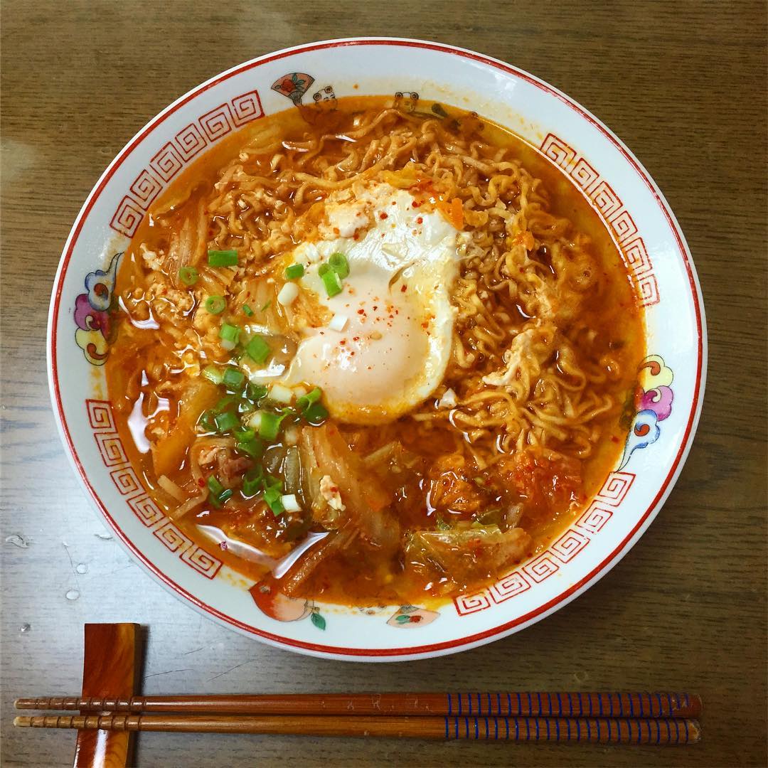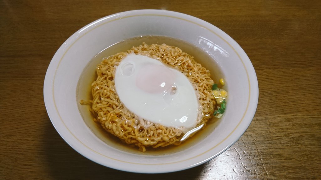 チキンラーメンは月見風じゃなくてかきたまあんかけ風にしたほうが美味かった