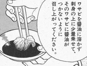 刺身にわさび乗せて食べるって漫画で見たぞ
