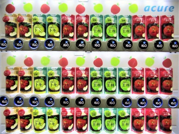 JR東日本盛岡支社青森支店の広報担当者によれば、自販機が設置されたのは2017年12月。エキナカを中心とする自販機事業を手掛ける「JR東日本ウォータービジネス」の当時の発表によると、JR青森駅東口コンコース駅正面出入り口付近と、新青森駅の在来線乗換改札内エスカレーター付近に設置されたという。 当時の発表によれば、青森県を盛り上げる一環として設置されたとのこと。青森駅と新青森駅ではデザインが異なり、それぞれのコンセプトがあるようだ。 赤リンゴと黄リンゴが全体にあしらわれ、ピンクの柔らかい色調がベースとなる青森駅は、 「子どもからお年寄りまで、JR青森駅を訪れる人の心を和ませ、元気な気持ちにしたいという想い」 があったという。対して新青森駅は、新幹線と在来線の乗り換え通路という人が常に流れる場所にあるため、遠くからでもパッと目を引く「岩木山」と「りんごの樹」を壁全体に描いたとのことだ。 中に入っているのは、JRオリジナルの飲料ブランド「acure」(アキュア)の青森りんごシリーズ。 続きはソース https://j-town.net/tokyo/column/gotochicolumn/289878.html?p=all