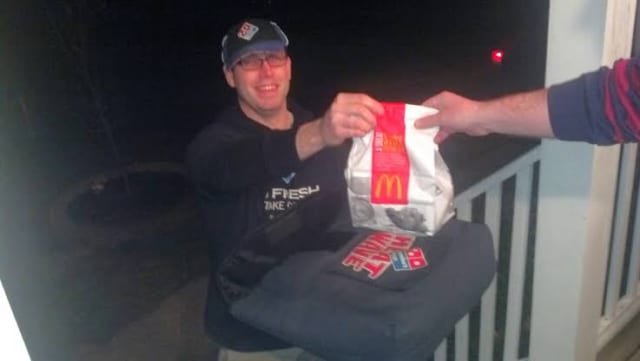 これマ○クで食中毒起きたらド○ノピザ配達員はどうするんだろ ?
