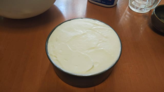 市販のタルトカップに業務スーパーのレアチーズ流し込んで