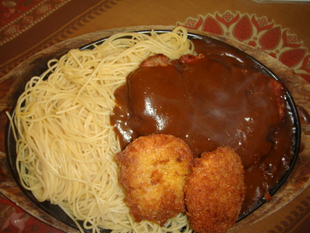 スパとお肉のセットはデザートやサラダ等いっぱい付いて1,300ぐらいでビックリよ
