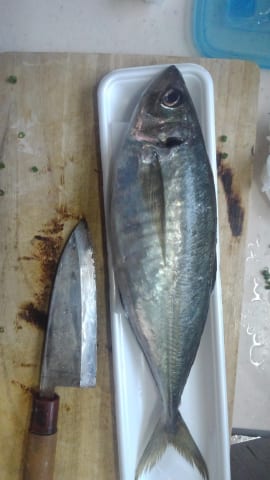 Aコープで780円のアジと580円のヒラマサの柵で作ったよ!(´・c_・`)