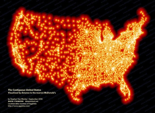 【画像】アメリカではマクドナルドから185キロ以上離れることができない