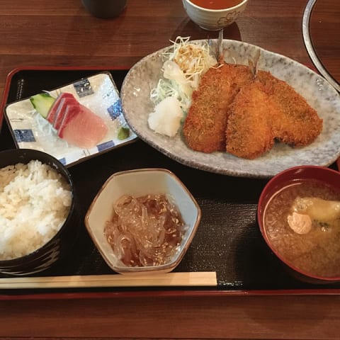飲み物水でも調味料無しでもキャベツ無しでも押す。アジフライ旨いじゃん。鰺の刺身でも南蛮漬けでも塩焼きでも押すな