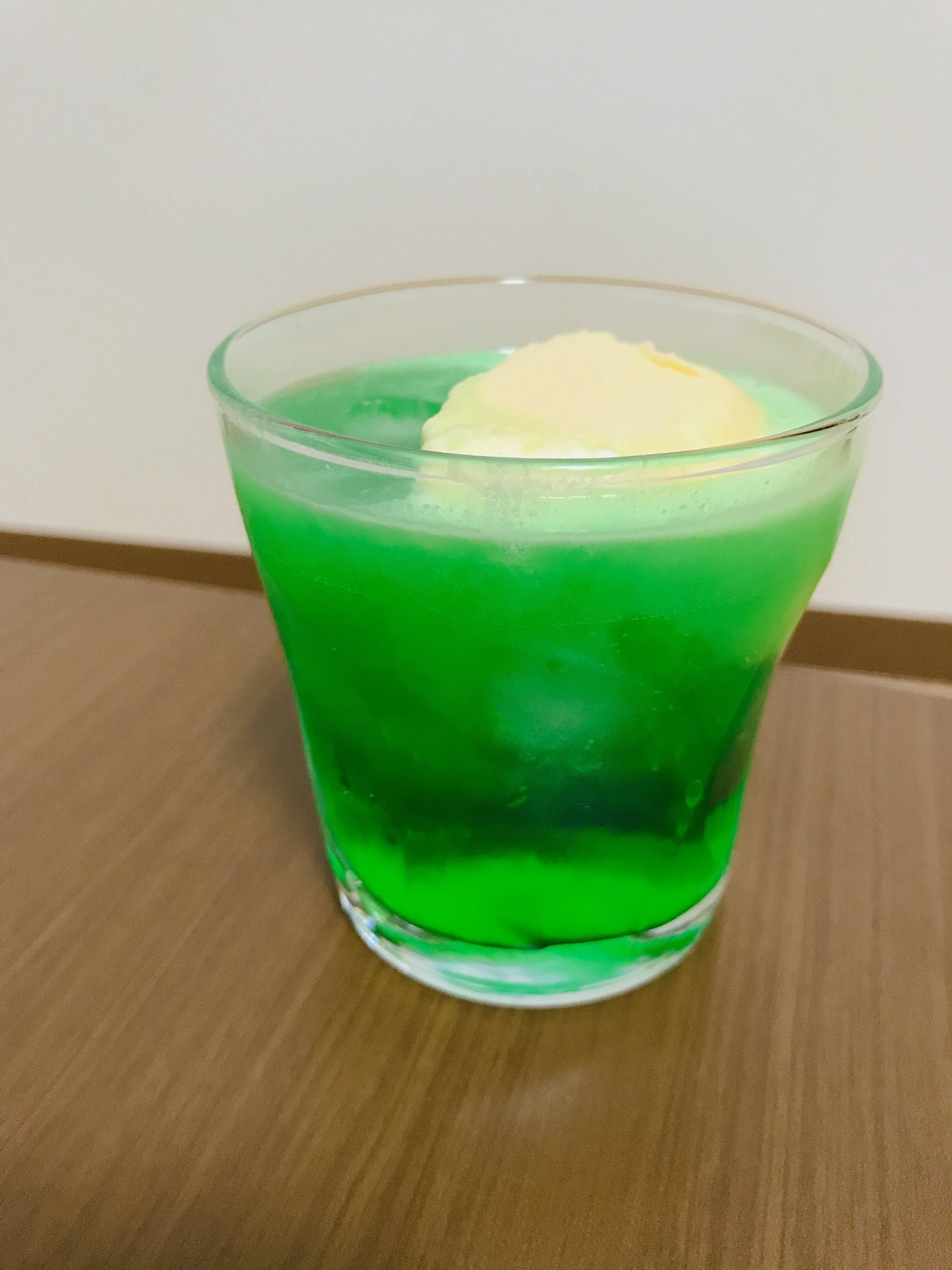 メロンソーダ注いでからアイス入れるだけ