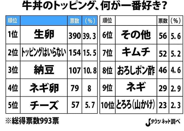 トッピング不要って牛丼チェーンにしてみれば嬉しい結果じゃなかろうか