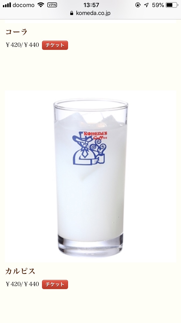 コメダ珈琲「ほいよ、カルピス420円ね」