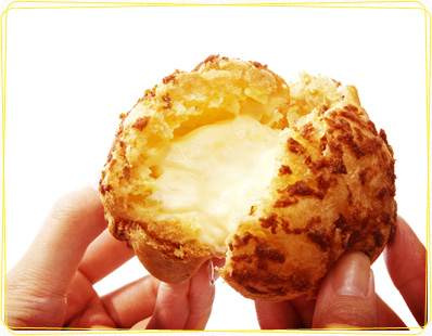 やわらかいシューだと噛んだ時潰れてクリームが脇から出てきてしまう