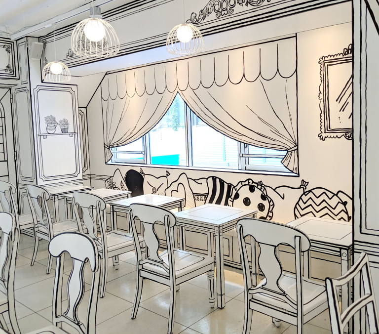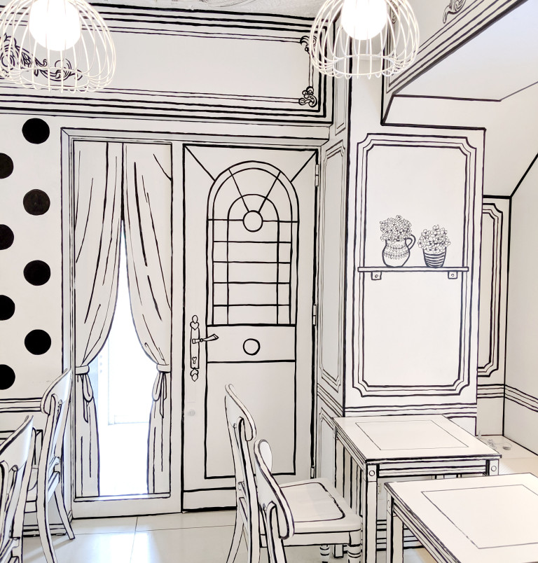 【画像】まるで絵の中に入ったようなカフェがすごい 頭が変になりそう