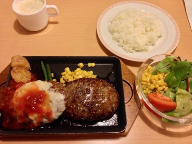初めて食ったときいきなり店員がハンバーグ真っ二つに切ってビビったわ