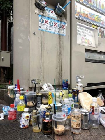 粒や液体を残したまま公園にポイ捨てしたり、自動販売機用ごみ箱へ捨てたりする人が多く、街の清掃ボランティアも頭を悩ませている。