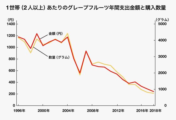 スーパーのジュース売場でもグレフルだけ高かったり50%だったりする。