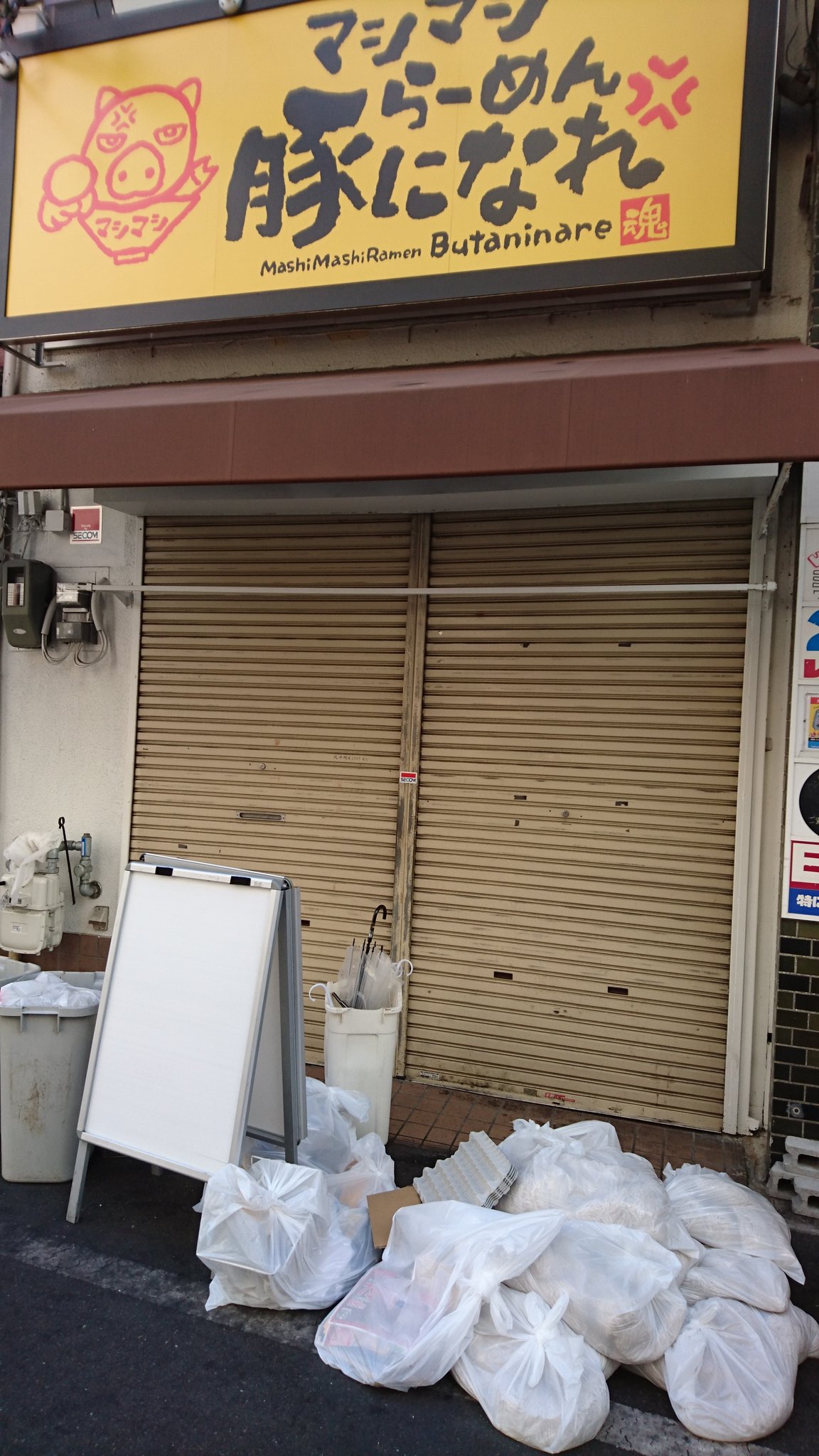 日本橋オタロード店 【マシマシラーメン豚になれ】2019年3月にオープン 同9月閉店 店の前に麺がそのまま捨てられる