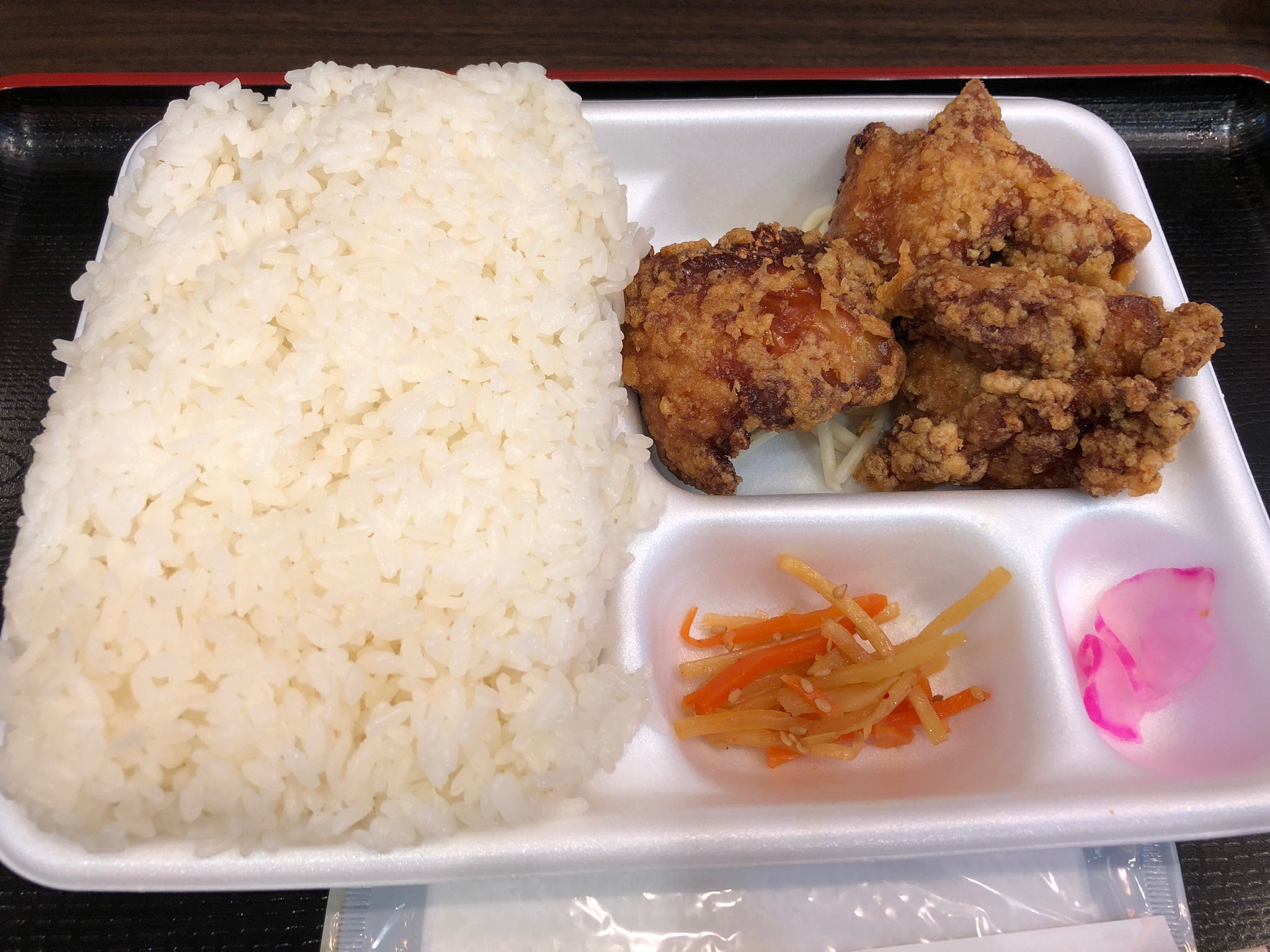 から揚げ3個でこのご飯の量辛すぎワロタ