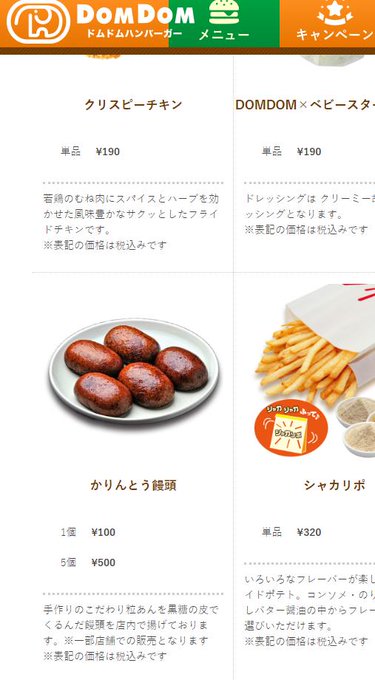 ドムドムハンバーガーのメニュー初めて見たけど面白くて草