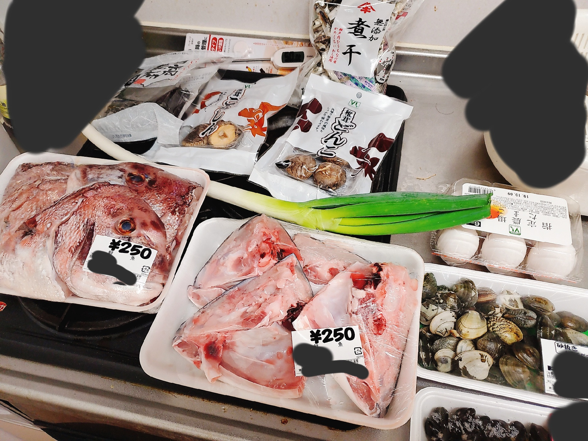 とりあえず出し殻の椎茸とアサリを載せるのは勘弁
