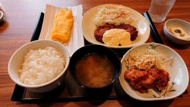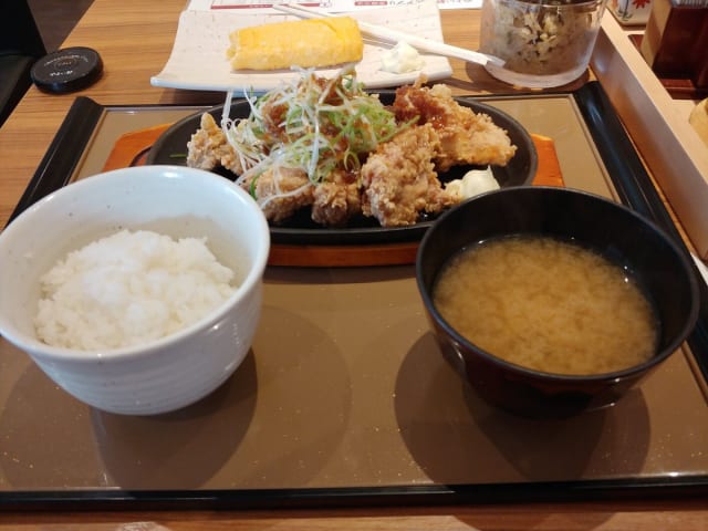 やよいは朝定のウインナーと目玉焼きのでいいわ、油淋鶏好きだけどどうせならしかるべきところで食べたい。