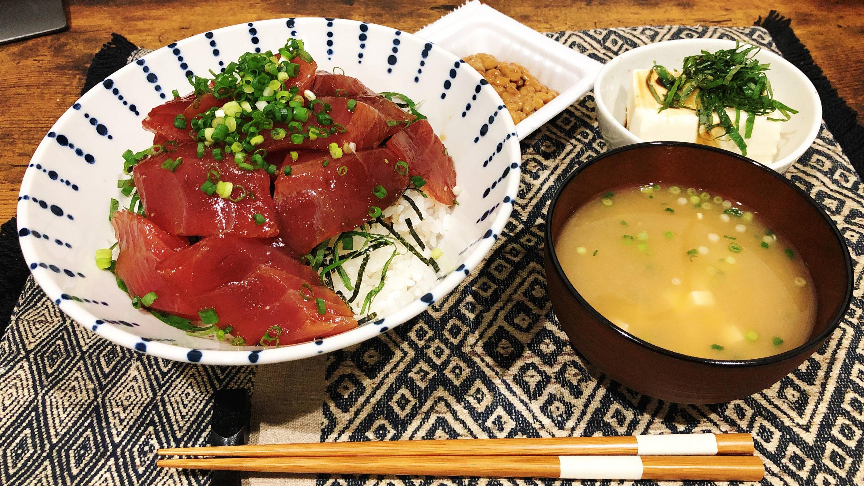 マグロ丼→醤油と昆布出汁の漬けタレ