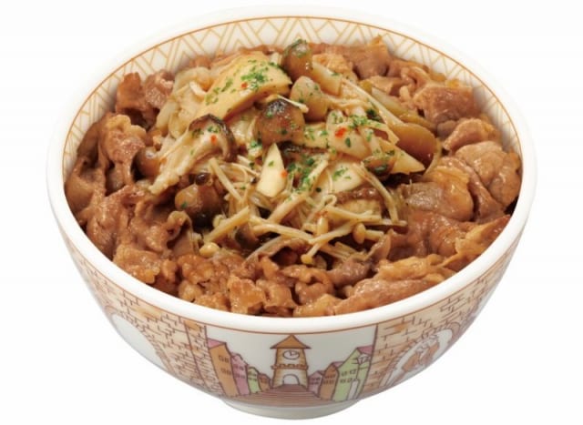 牛丼チェーン「すき家」は、「きのこペペロンチーノ牛丼」「きのこペペロンチーノ牛丼チーズおんたま Mix」を10月16日から期間限定で発売します。