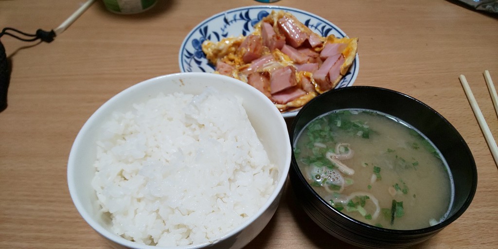 主食に白米もってくるなら二口ぐらいで食べられるちいさな焼き魚とか、それに相当するおかずがほしい