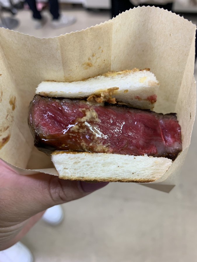 そんな中注目を集めたのは、「創作鉄板 粉者」が提供する人気メニューの素敵ステーキサンドで、ぶ厚いサーロインをカリッと焼けた食パンで挟んだもの。
