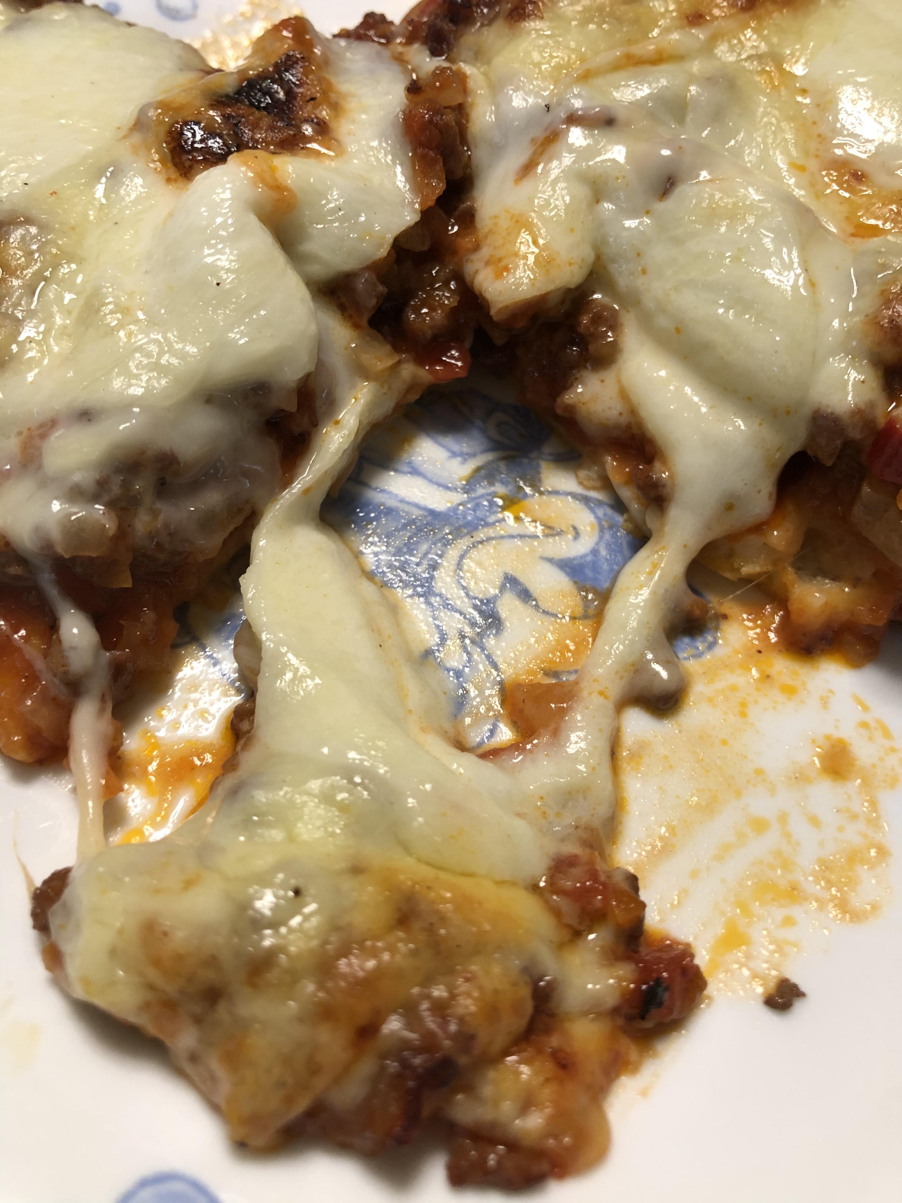 チーズの下は昨日作ったミートソースの残り🥺