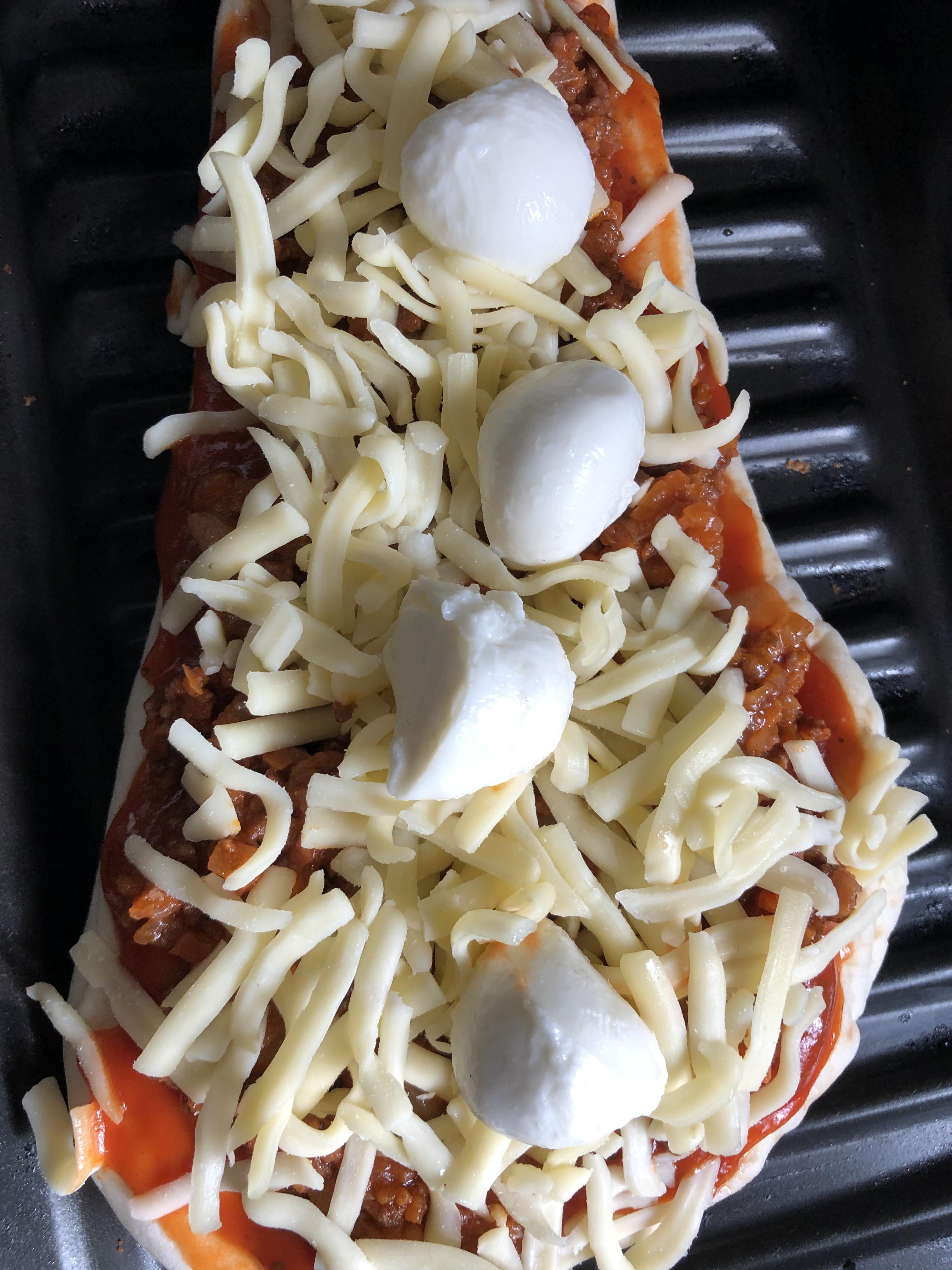 ピザソースとミートソース塗ってる🥺