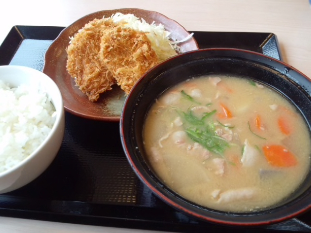 かつを食べに行くとこれではちょっと物足りない。値段は少し高くなるけどロースかつ定食の豚汁を大に変更した方が良い。もしくはかつ丼梅or竹と豚汁大。