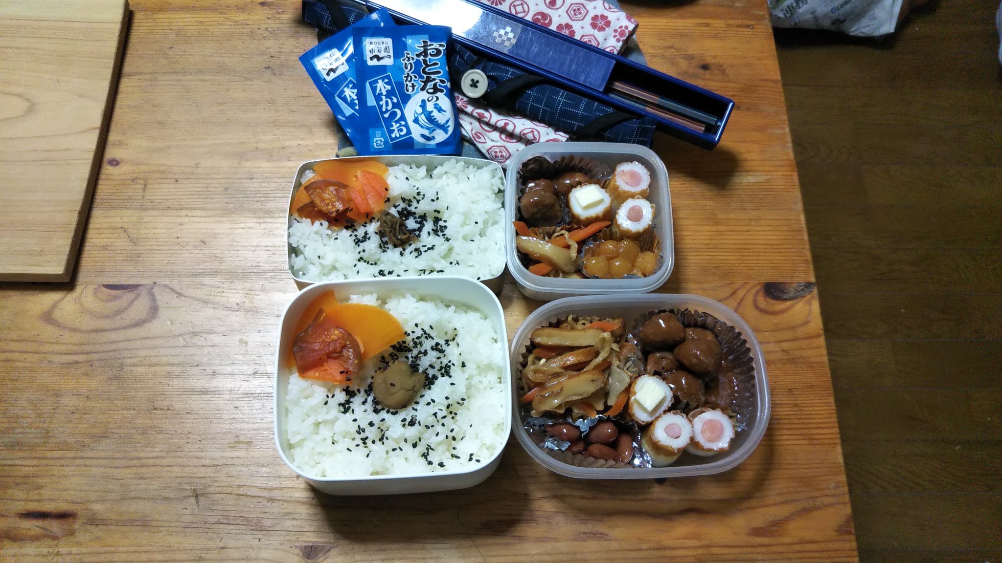 あとは一~二品、炒め物作るか作りおきの煮物詰める