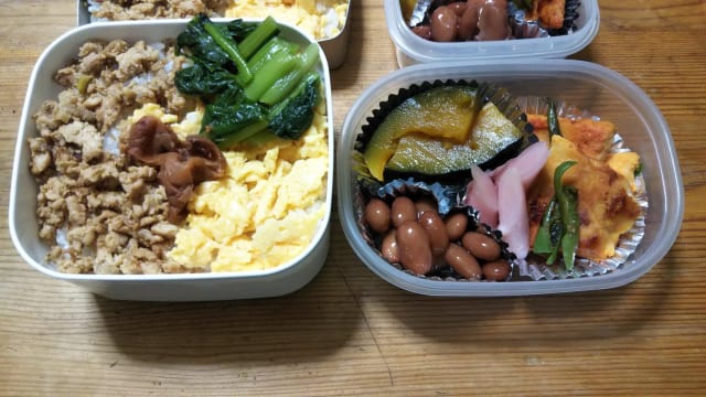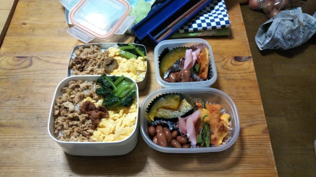手抜きではないけど手が凝ってる訳でもないごく普通のお弁当。彩りを気にしてないだけ