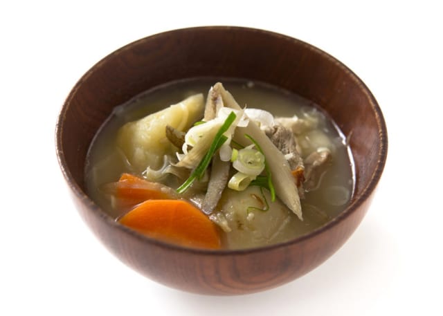豚肉、ゴボウ、里芋、豆腐、大根、人参、レンコン、玉ねぎ、ネギ