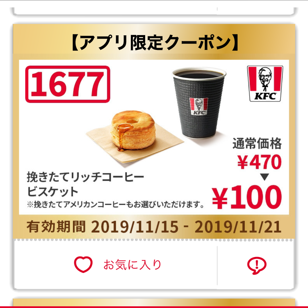 ビスケットとコーヒーの100円クーポンええな