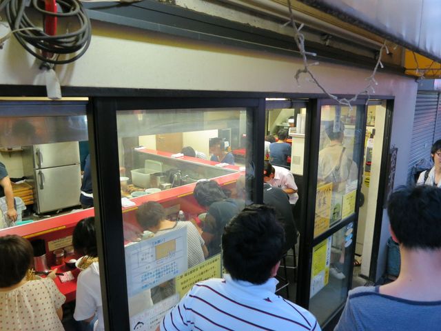 ラーメン二郎三田本店の場合、席の後ろがすぐ壁だから、空いた席に移動するのが一苦労