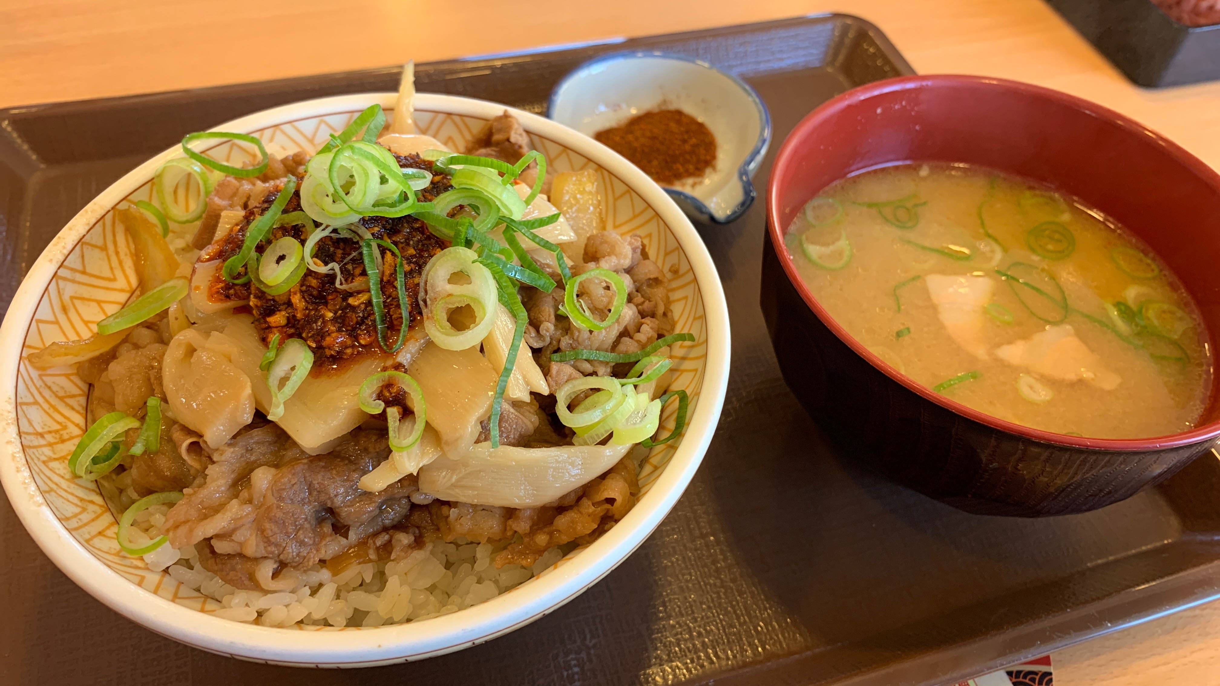 近くに吉野家しかないから吉野家のネギたま食うとる