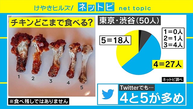 番組が渋谷で街頭インタビューを行ったところ「(4)。(残るのは)気になりますけど、最後まで食べきれない。おなかいっぱいで飽きちゃいます」(10代女性)や