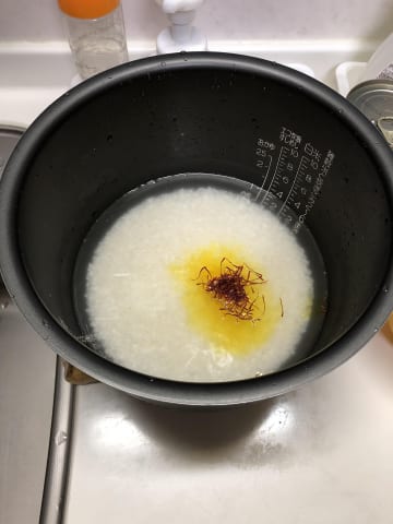 サフランライスは炊くの初めてやから上手く出来るか心配