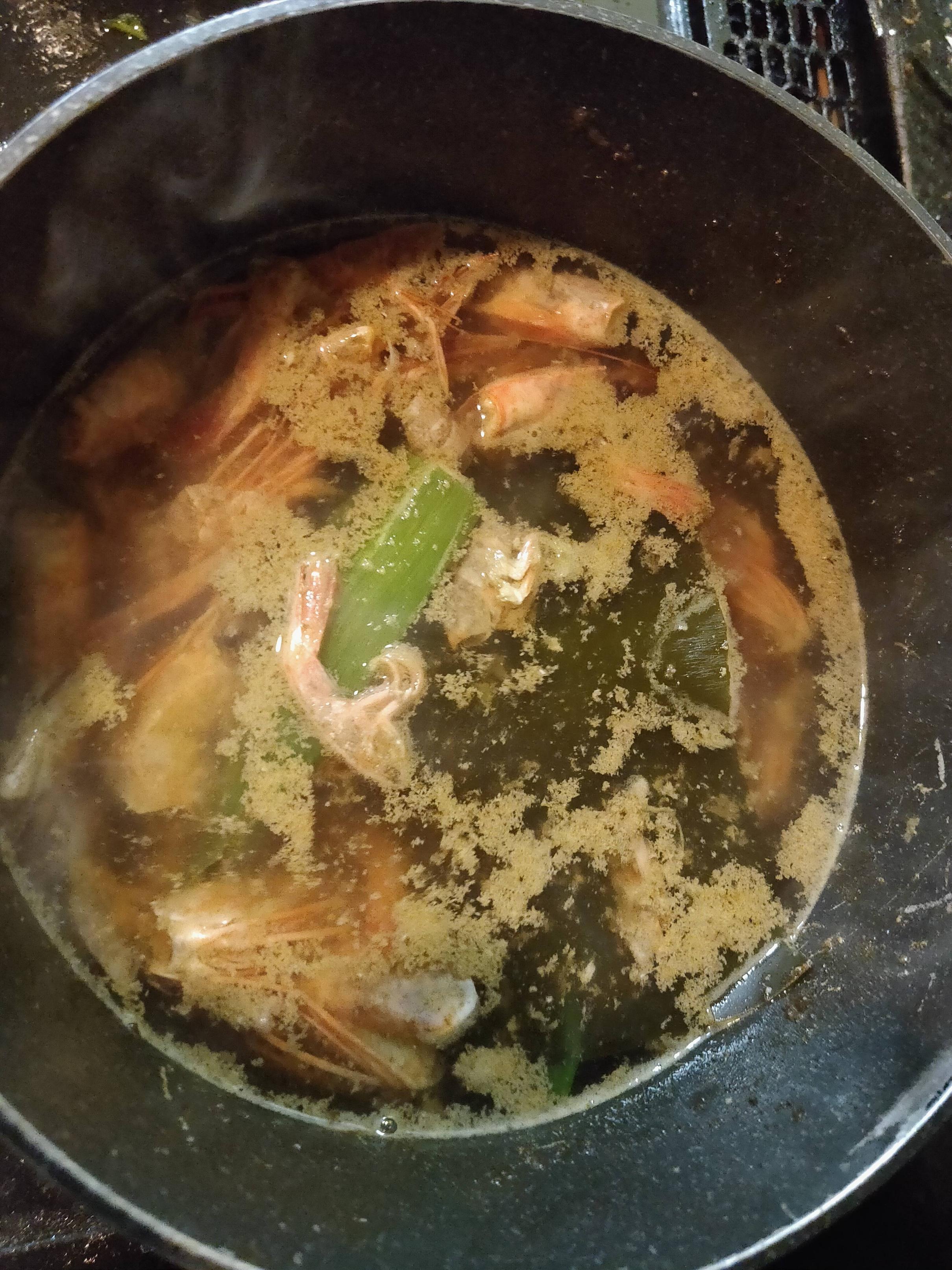 せっかくやから出汁取ったエビの剥き身使えばええのに